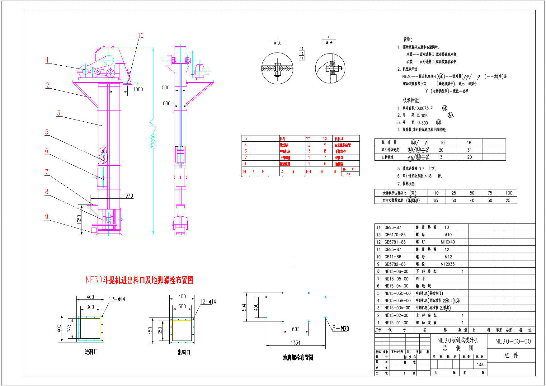 NE30斗式提升機外形圖及地基尺寸